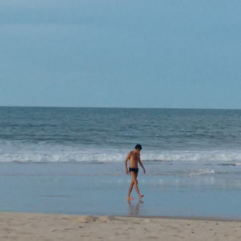 Nossa pousada ficava bem "na divisa"entre a parte mais turística (olhando para o mar, à esquerda) e a parte de proteção ambiental (mais à direita). Então a praia era só da gente, nessa baixa temporada. O Nando chegou a andar ainda mais para a direita e encontrou outras praias ainda mais vazias e lindas. Eu nem fui, pois Filó estava meio gripada/meio febril, então fiquei mais com ela e descia em revezamento com o Nando.